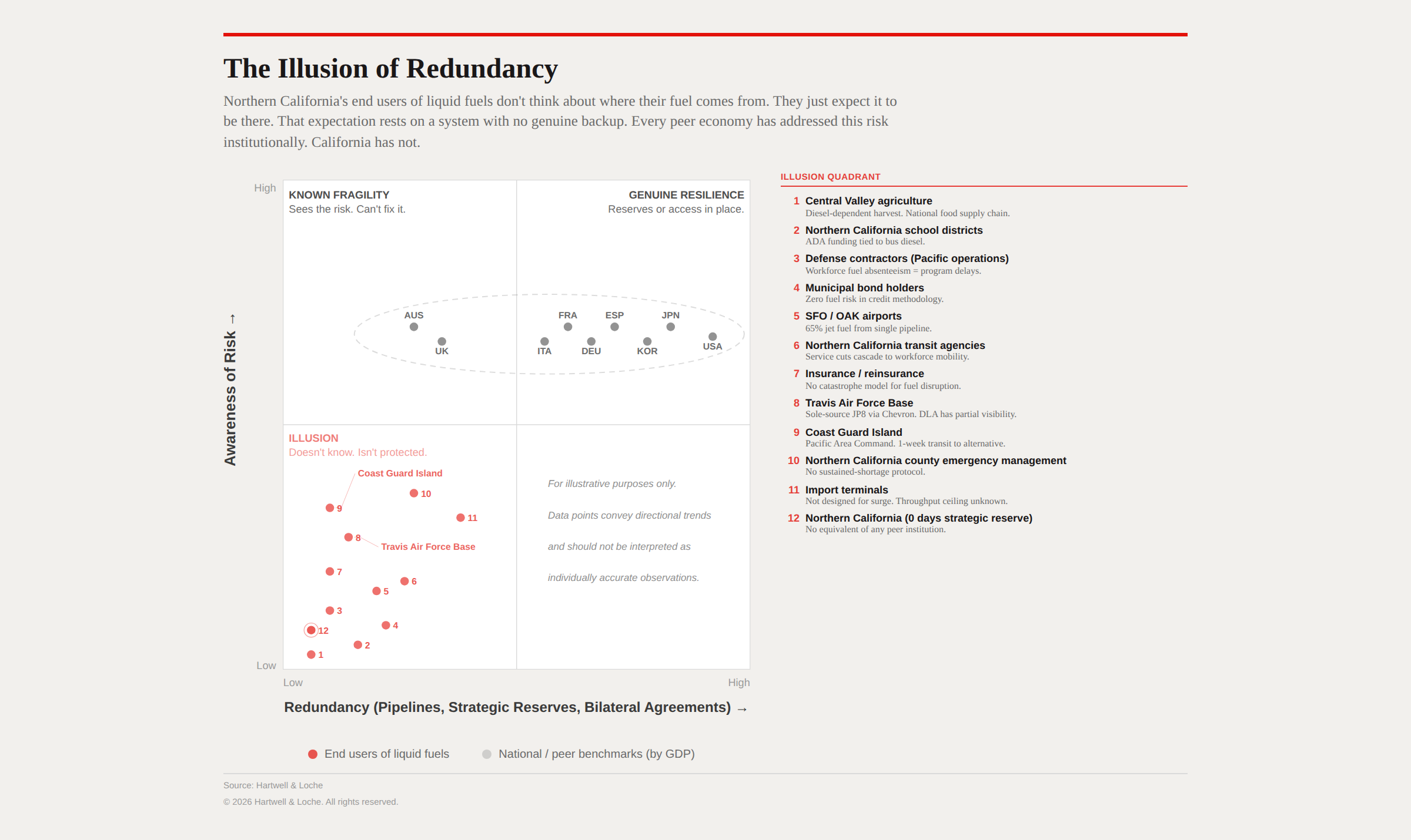 California holds zero days of strategic gasoline reserves. Has no institutional owner for managing strategic fuel supply risk. And has no bilateral supply agreements. Every peer economy (by GDP) that traveled this refinery capacity road built a safety net from the highest levels of government. California has not.